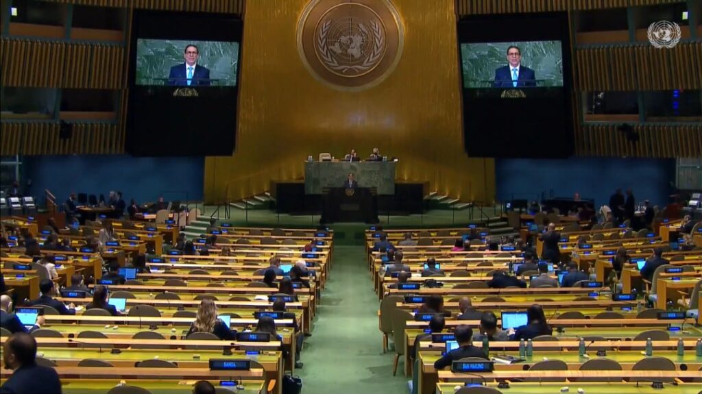 La Habana, 21 de septiembre de 2022.- Bruno Rodríguez Parrilla, ministro de Relaciones Exteriores de Cuba, intervino hoy en el segmento de alto nivel del 77 período de sesiones de la Asamblea General de las Naciones Unidas (ONU).