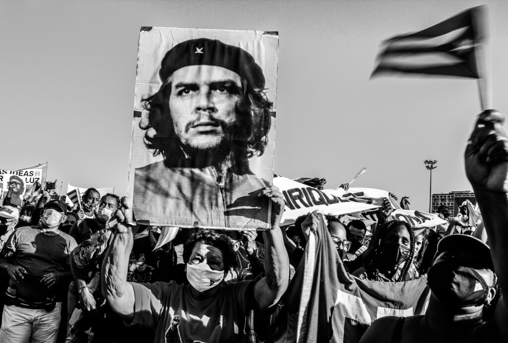 Me hago la idea de que los desfiles anteriores eran más lentos y recordaba a mi papá, llevándome en sus hombros, aferrado al contén de la derecha para ver de cerca a Fidel. Entonces, de pronto aparece ante mí aquella mujer alzando una fotografía del Che. Era la foto de Korda, pero me pareció tan natural, que sentí como si el Che estuviese de nuevo allí en la Plaza. Creo haber sentido algo muy parecido a lo que sintió Korda al hacer ese retrato, pues a mí también me tomó de sorpresa, y la verdad, la mirada del Che en ese retrato es tan fuerte que sorprende a cualquiera. Entonces, tomé la foto.