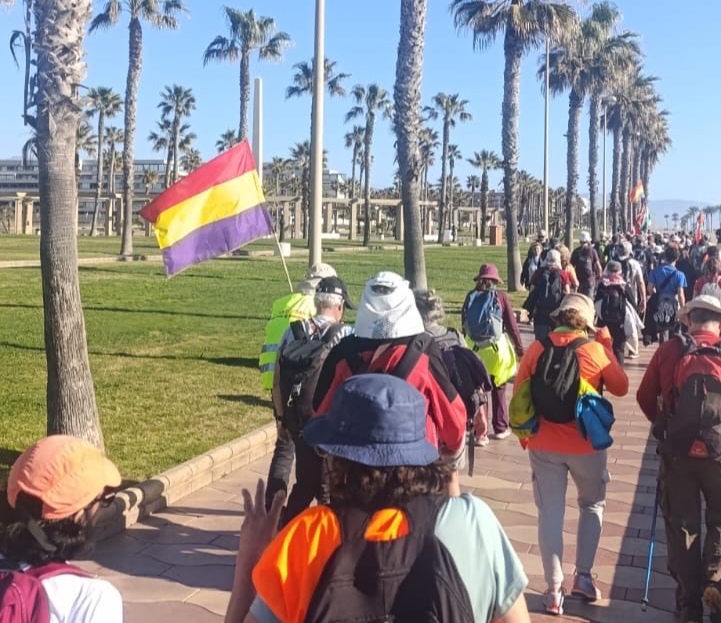 Hoy en la marcha se ha gritado numerosas veces el Viva a la República. Ello no tiene mucho mérito por cuanto creo que toda la marcha es de convicciones republicanas, sin embargo, si es importante que, desde que salimos de Málaga, en ese cruce de apoyos o críticas que recibimos de viandantes, ciclistas o automovilistas, desde ellos, si que nos han saludado numerosas veces con el grito de Viva la República, y quizás por la mayor concienciación de los tiempos en que vivimos, también nos han saludado como antifascistas. Nuestra marcha defiende la memoria de las víctimas, pero estas víctimas lo fueron por ser defender la República, palabra que significaba para la mayoría del pueblo, el fin de la opresión y el fin de los privilegios de las clases dominantes, la nobleza, el clero, los terratenientes, los gran des capitalistas, y también el fin del centralismo borbónico y la posibilidad de la autodeterminación y el autogobierno de los pueblos de España. Llevar el debate de la República a la calle, permite sembrar la esperanza, entre mucha gente, que considera que los cambios políticos no son posibles.