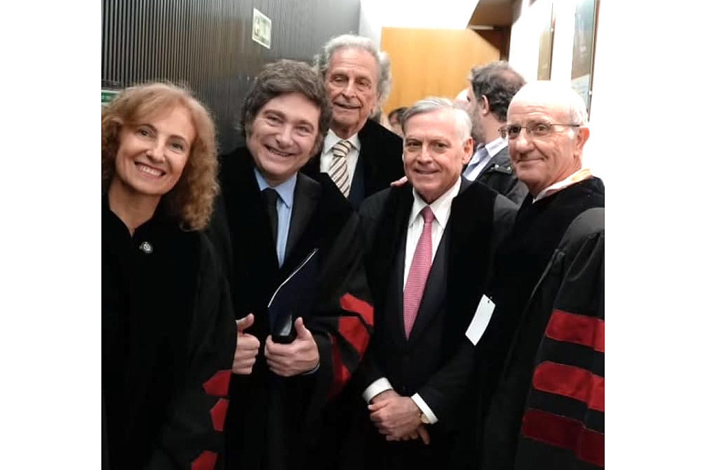 Hay distintas versiones sobre los motivos de la ausencia; en cualquier caso, escandalosa. Unos apuntan a una actividad previa de la que participó Milei, que retrasó su vuelo a Roma: la entrega del Doctorado Honoris Causa al economista español Jesús Huerta de Soto, en la Escuela Superior de Economía y Administración de Empresas (ESEADE), de su socio Alberto Benegas Lynch.