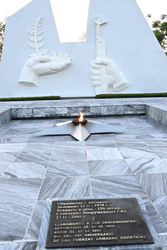 El homenaje tuvo lugar en el mausoleo al Soldado Internacionalista Soviético, ubicado en las afueras de La Habana, donde descansan los restos de combatientes de ex repúblicas soviéticas, que perdieron su vida en Cuba en el cumplimiento de una misión internacionalista.