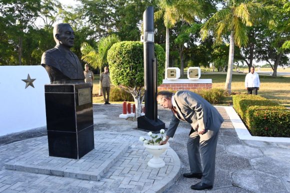 Luego los participantes colocaron rosas ante la escultura que recuerda al General de Ejército Issá Aleksándrovich Plíyev -dos veces Héroe de la URSS en la II Guerra Mundial- designado el jefe de la agrupación de tropas soviéticas en Cuba, durante la crisis de octubre de 1962.