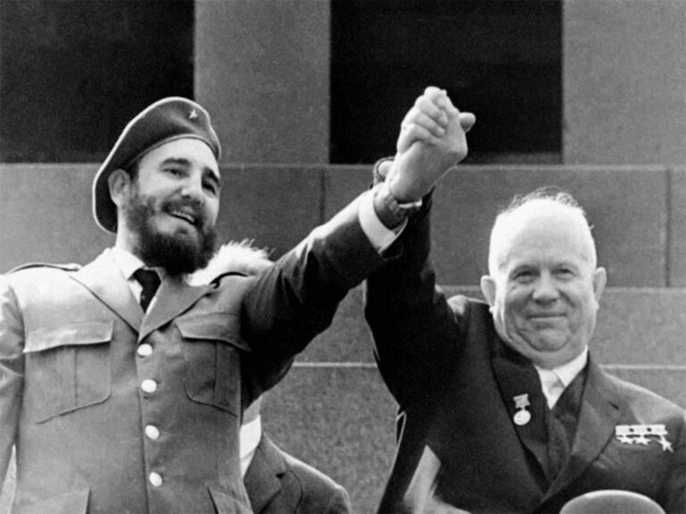 Efectivamente, al lado del entonces primer ministro de la URSS y gran amigo de Cuba Nikita Jruschov, y del ministro de Defensa, mariscal Rodión Malinovski, estaba allí, de boina verde olivo y traje de gala.