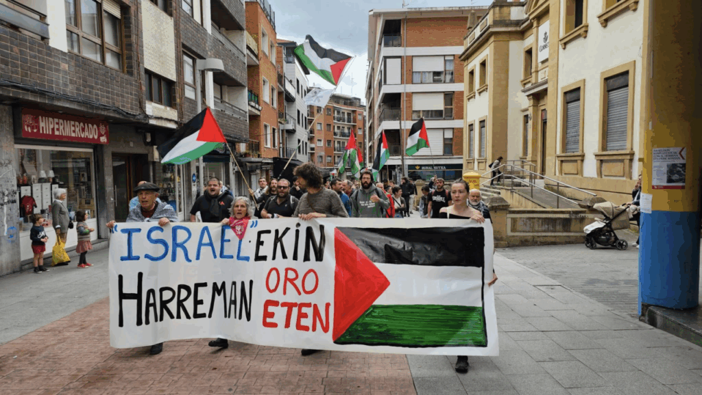 La movilización poblada de banderas palestinas, culminó en la plaza Txiki ta Otaegi (dos revolucionarios vascos asesinados en tiempos del fascista Franco), y allí leyeron un comunicado denunciando que Europa es cómplice del genocidio sionista, y reiteraron su solidaridad con la Resistencia de todo el pueblo palestino.