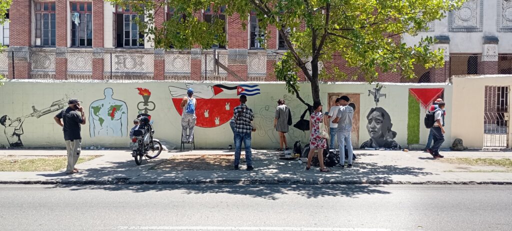 El mural es también una denuncia desde Cuba al genocidio que intenta exterminar al heroico pueblo palestino. Y representa a su vez la solidaridad y el amor que históricamente emana desde la tierra de Fidel hacia Palestina.