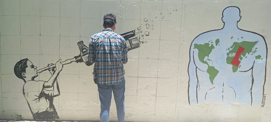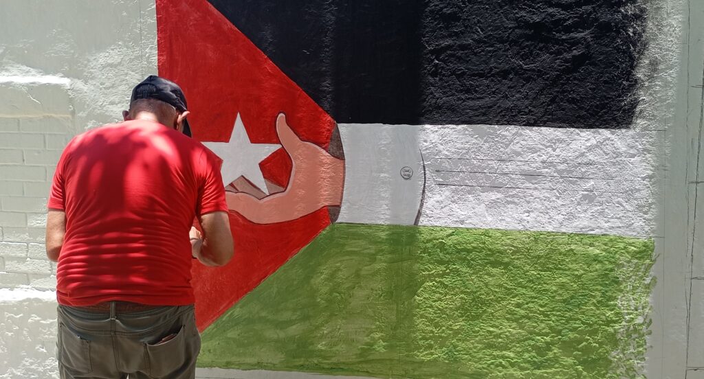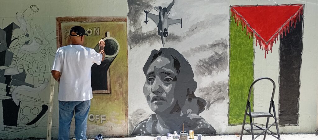 «Este mural es un homenaje a las víctimas del genocidio en Palestina, pero sobre todo para recordar los 77 años del Nakba, que dió inicio a los crímenes de «Israel» contra el pueblo palestino», expresó Adán Toledo, reconocido caricaturista cubano.