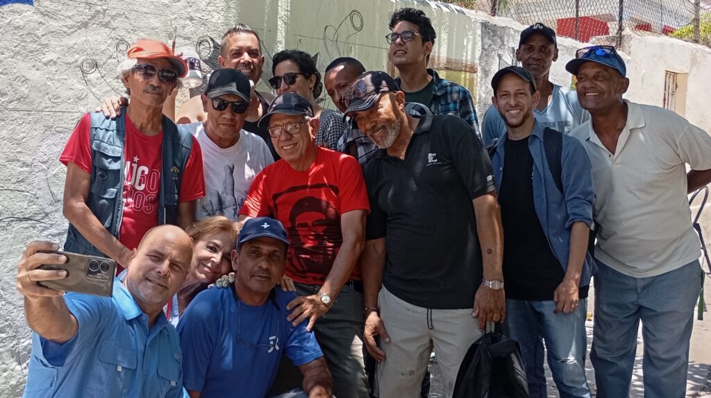 En medio de la jornada de trabajo, los artistas plásticos fueron visitados por Gerardo Hernández Nordelo, Héroe de la República de Cuba y Coordinador Nacional de los CDR, quien fue protagonista también de la ejecución de la obra .