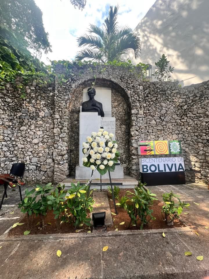 La Embajada del Estado Plurinacional de Bolivia en Cuba, en conmemoración al Bicentenario, rindió homenaje a Simón Bolívar y José Martí, dos inmortales hombres que brillan en el cielo y nos alumbran cada día.