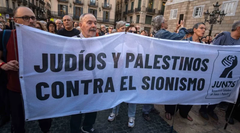 Foto: Una pancarta muestra el lema de judíos y palestinos contra el sionismo durante una manifestación en Barcelona/ Paco Freire / Zuma Press / ContactoPhoto