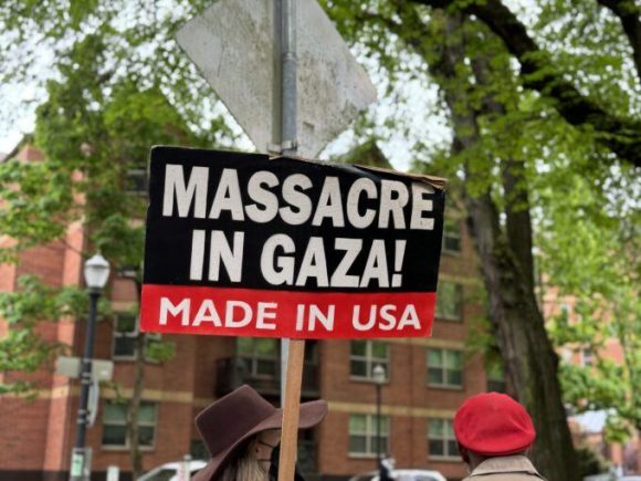 Mientras tanto, Israel sigue lanzando bombas fabricadas en Estados Unidos sobre «zonas seguras» de Gaza, donde las tiendas de campaña son el único refugio para los palestinos desplazados, la mayoría de los cuales han perdido sus hogares y se han visto obligados a huir de un lugar a otro repetidamente durante los últimos 20 meses.