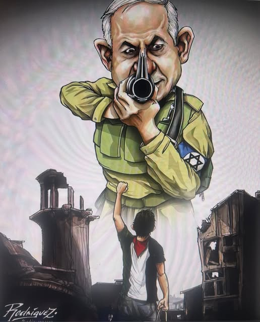 Indudablemente Benjamín Netanyahu es el referente de los carniceros de turno, el guaripola (1) mayor. Pero…centrar todas las diatribas en este ser despreciable, respecto de la usurpación, expolio, destrucción, robos contra el pueblo palestino, crímenes monstruosos, es restarle responsabilidad al conjunto de la sociedad israelí. Reitero, no es el “Carnicero de Gaza” el problema principal, como tampoco la eliminación física puede ser la solución definitiva, aunque en un mundo ideal considero necesaria llevar a cabo la ejecución de estos asesinos, por un Tribunal Internacional, ya sea mediante la horca o el fusilamiento ante su papel en el genocidio que se ejecuta contra el pueblo palestino.