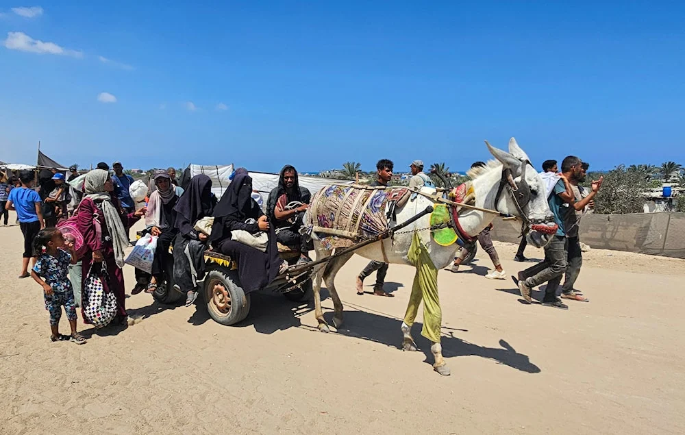 Conforme a los testigos oculares, cientos de familias abandonaron el suroeste de Deir al-Balah rumbo a Al-Mawasi, cargaron sus pertenencias mínimas y sin asistencia garantizada.
