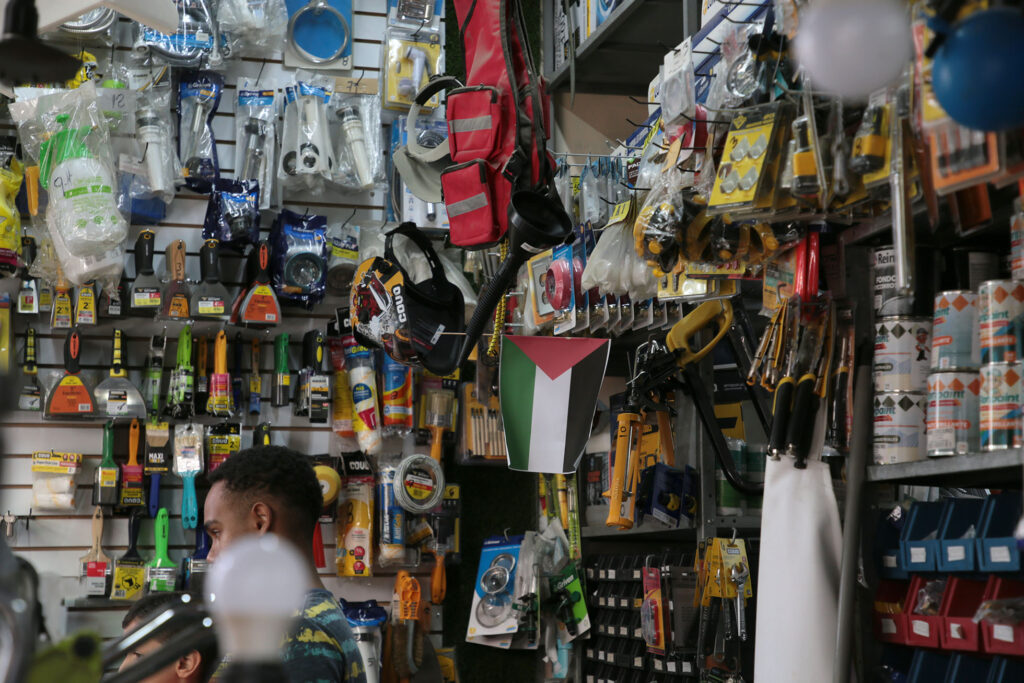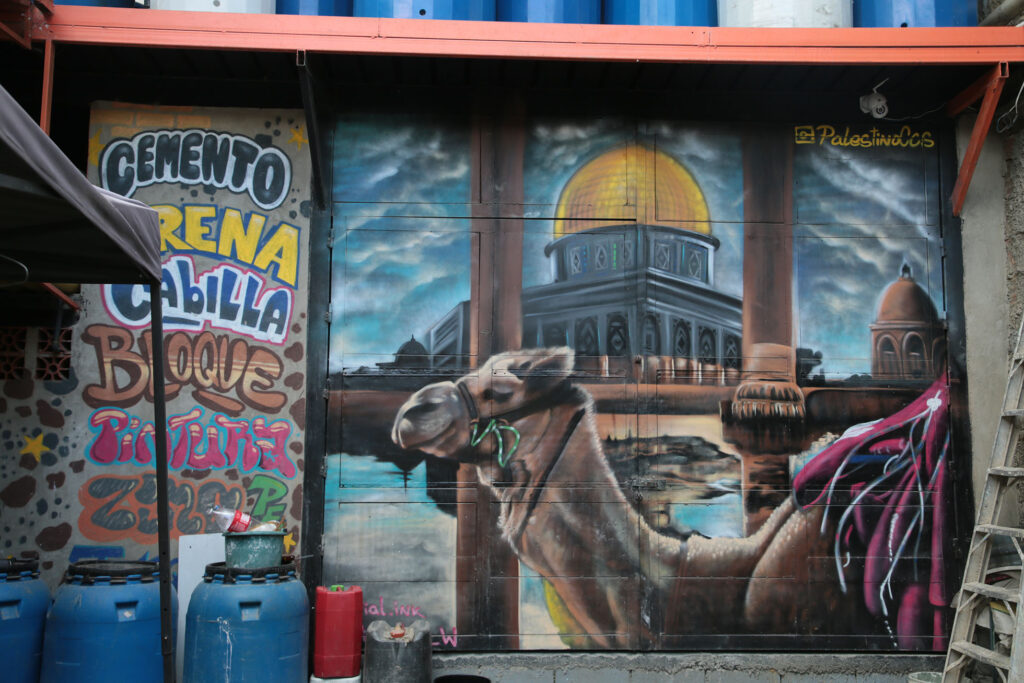 «Aquí están los palestinos», no sé ni quién me dijo pero era evidente. Una fuerte energía atraviesa el portón con el mural dedicado a la sagrada tierra palestina, detrás está el pequeño negocio de ferretería de la familia Abdallah.