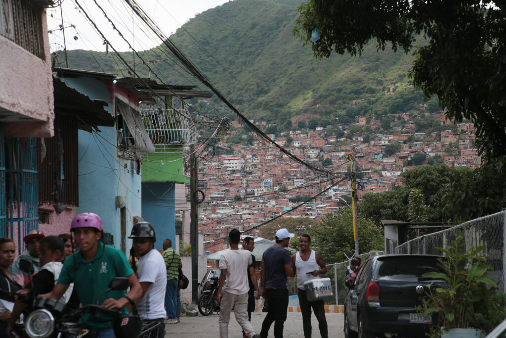 Bajamos del cerro de El Petróleo gracias al buen timón del pastor David, curvas estrechas, murales hechos banderas, olor a arepas con carne mechada, música llanera, pura Venezuela.