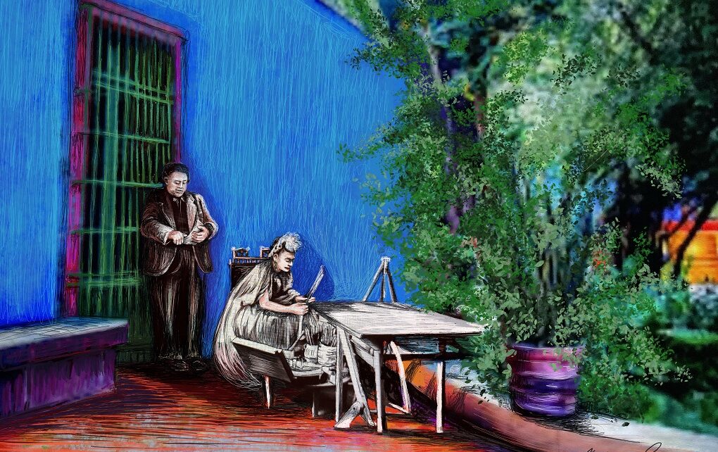 He recorrido la Casa Azul en Coyoacán, espacio habitado por Frida y Diego a lo largo de muchos, incontables e intensos años, y a cada paso se nos devela la fuerza, la voluntad y la valentía de quienes son prodigio en el arte mexicano y ejemplo de vanguardia artística y política de su tiempo —ambos fueron fervientes militantes comunistas. Primero nuestros pasos nos llevan a las amplias habitaciones que exponen sus cuadros, luego a lo recóndito, a lo íntimo: a la cocina, el comedor, los dormitorios y el taller de trabajo. Es un recorrido a la exaltación de lo mexicano en la vida cotidiana. Ella y él, reverenciaban el pasado ancestral con una obstinación pertinaz que coloca lo propio en las paredes, las sábanas, los armarios, los libreros, las sillas, los espejos, los retratos, las mamparas, los libros, las terrazas y el jardín interior. Unos amores difíciles, intensos, hermosos palpitan allí, como un sentimiento fuerte y perdurable adosado a las piedras, los detalles, las pinturas.