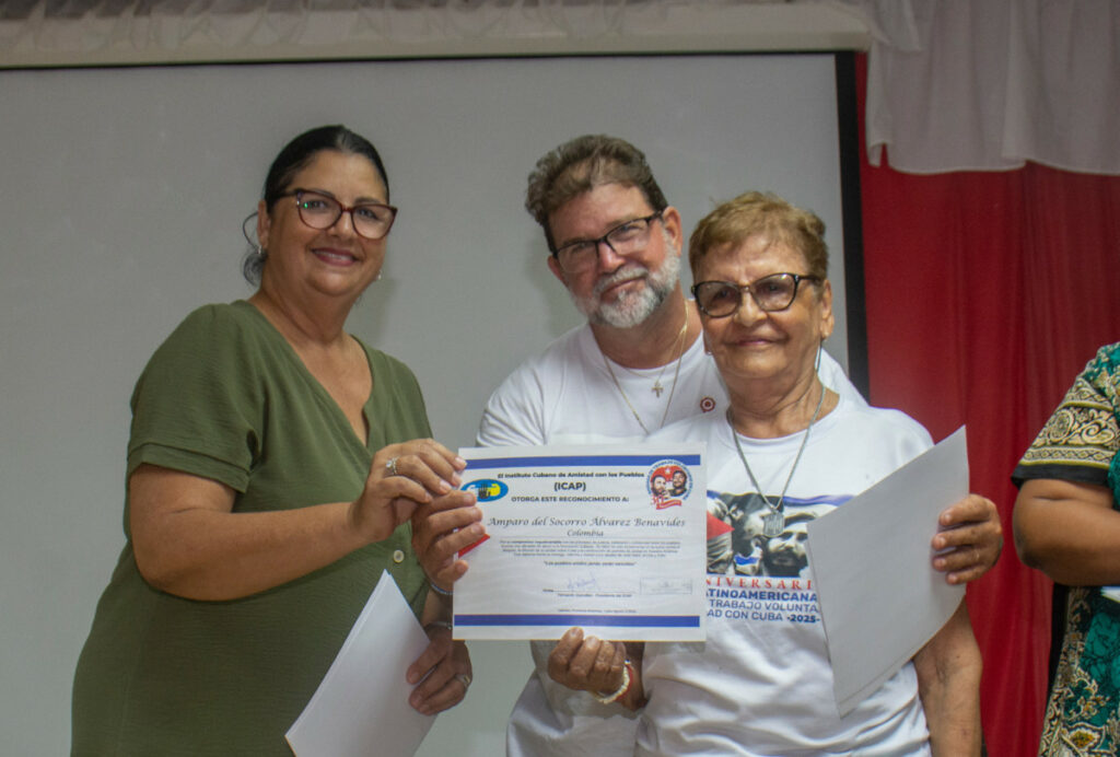 Luego de la entrega de diplomas de reconocimiento a destacados amigos -entre ellos María Isy de la luz Riva y la veterana brigadista Amparo Álvarez Benavides- y al cantautor colaborador del ICAP Reinier Valdés, se procedió a la lectura de la Declaración Final de la brigada.