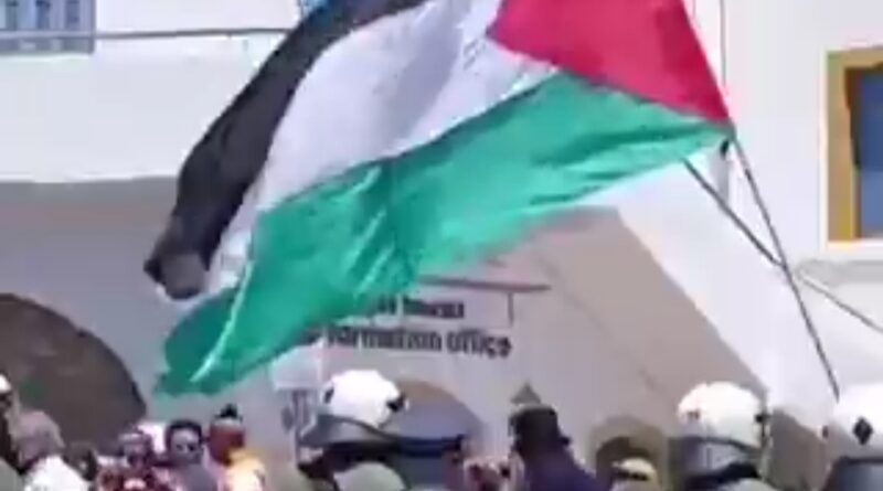Nuevamente, los ciudadanos griegos protestan por la presencia de turistas israelíes. Ellos exigen el fin del genocidio en Gaza y castigo para los criminales de guerra.