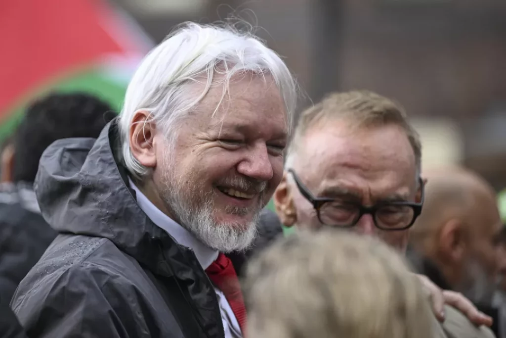 Assange, que recuperó su libertad tras un acuerdo con el gobierno estadunidense que buscaba procesarlo por publicar información diplomática y militar ultrasecreta, no se dirigió a la multitud ni habló con los medios.
