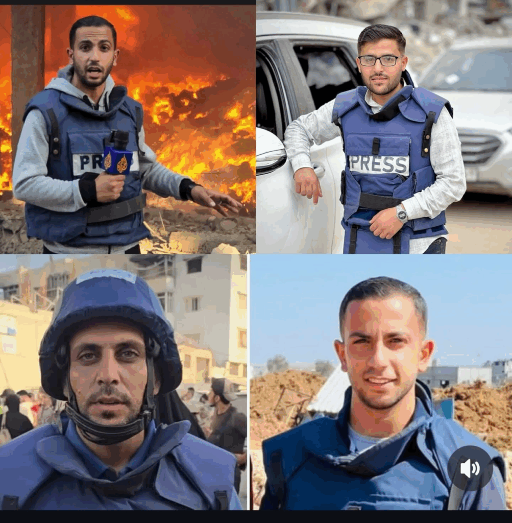 El ataque, dirigido directamente contra la tienda de campaña de los medios de comunicación ubicada en las inmediaciones del hospital Al-Shifa, en Gaza, cobró la vida de nuestros compañeros Anas Al-Sharif, Muhammad Qariqa, Ibrahim Zahir y Mu’min Aliwa.