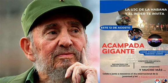 La Unión de Jóvenes Comunistas (UJC) y el Instituto Nacional de Deportes, Educación Física y Recreación (Inder) convocan para la noche de este martes a una acampada gigante para celebrar el Día Internacional de la Juventud y el aniversario 99 del natalicio del Comandante en Jefe Fidel Castro Ruz.