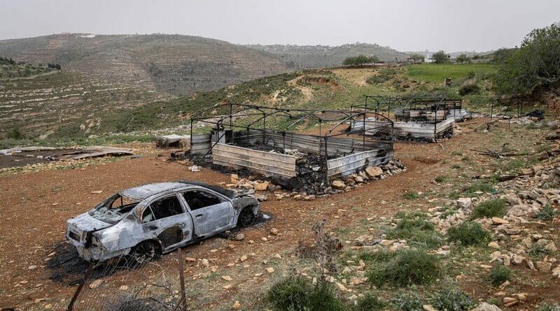 Foto: Las secuelas de un ataque de colonos en Sinjil, 23 de abril/ Faiz Abu Rmeleh