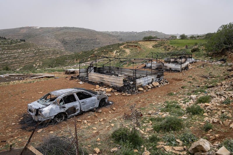 Foto: Las secuelas de un ataque de colonos en Sinjil, 23 de abril/ Faiz Abu Rmeleh