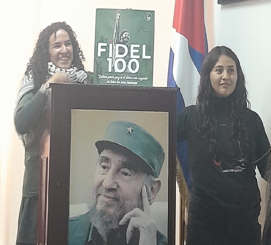 Viviana Mejía, de la cátedra Fidel Castro, recordó en primer lugar la defensa que siempre hizo el luchador cubano por la causa palestina, cuyo pueblo sufre a causa de un genocidio imperialista que se entronizó en los últimos años.
