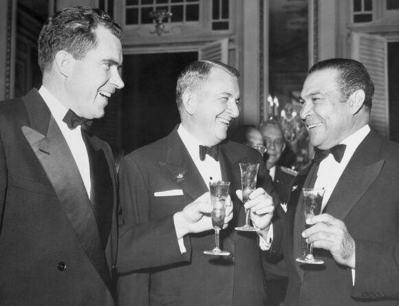 Foto: El dictador cubano Fulgencio Batista (derecha) con el entonces presidente interino cubano Andrés Domingo (centro) y el entonces vicepresidente estadounidense Richard M. Nixon (izquierda) en una cena en el palacio presidencial cubano en febrero de 19557 Bettmann / Getty Images