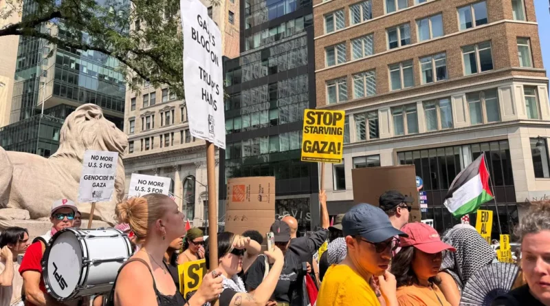 Más de 10.000 personas se manifestaron este sábado 16 de agosto en la ciudad estadounidense de Nueva York para exigir el cese inmediato de las operaciones genocidas perpetradas por el Ejército de Israel en la Franja de Gaza, y rechazar los planes colonialistas del Gobierno de Benjamin Netanyahu que pretenden ocupar todo el territorio del enclave palestino.