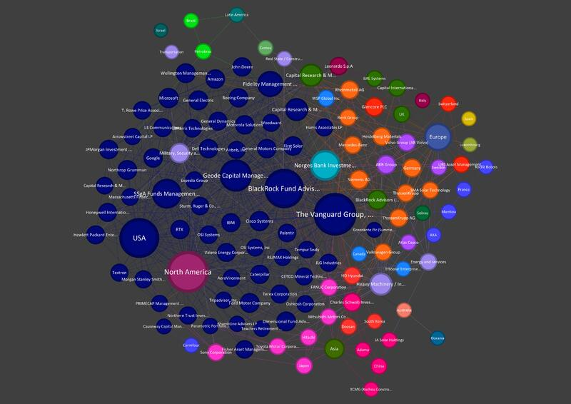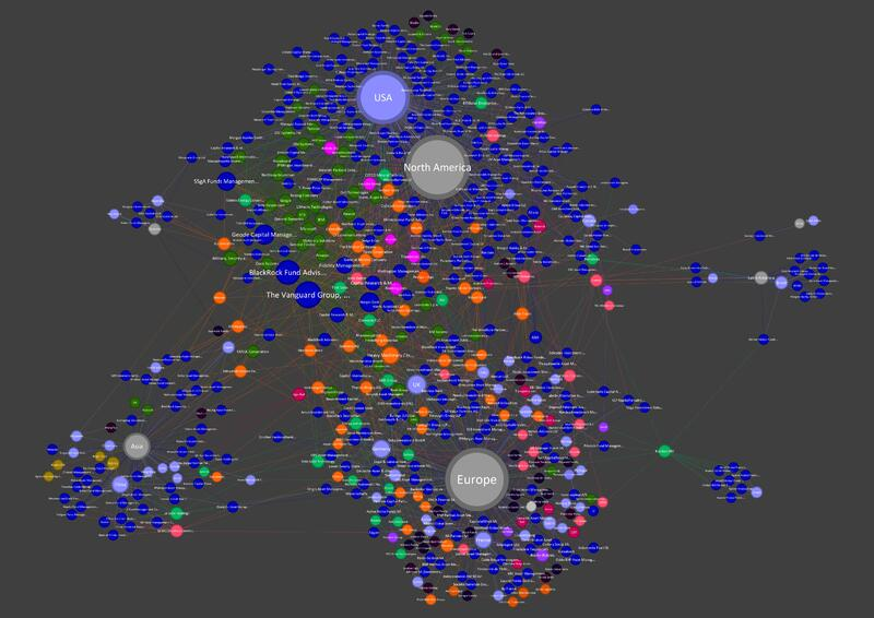 Como las instituciones financieras tienen acciones en varias empresas, es interesante ver cómo conectan diferentes puntos de esta economía y cómo pueden mover capital de un sector a otro a través de sus propias redes de inversión. Si agregásemos a la red todas las empresas en donde BlackRock, Vanguard o el Norges Bank tienen compradas acciones, podríamos ver que toda la economía, con todos sus sectores, está involucrada porque se encuentra profundamente interconectada por ellas.