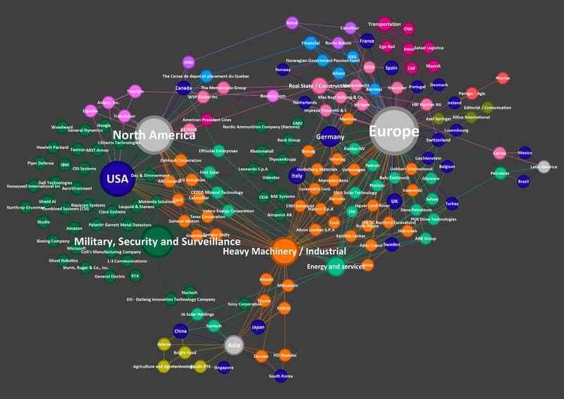 Aunque la cantidad de actores que intervienen pueda resultar abrumadora, esta metodología es un intento de poder abordar esta hiper-complejidad, desmenuzando la trama y viendo que, aunque muy volátil, el Capital también tiene una territorialidad: toda empresa e institución financiera tiene sus CEOs y sus oficinas centrales en una parte concreta del planeta.
