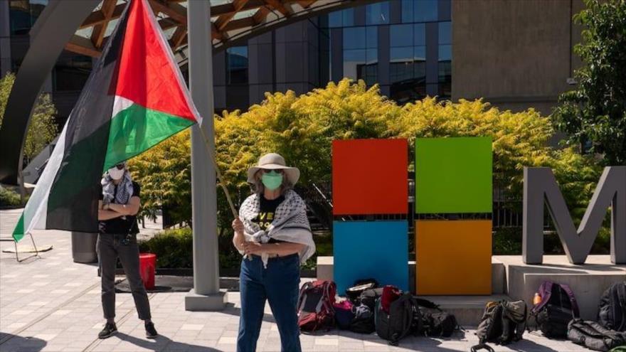 Empleados y activistas se concentraron en la sede de Microsoft en Redmond, Washington, para exigir que la compañía rompa sus vínculos con el régimen israelí y deje de aportar tecnología utilizada en el genocidio en curso contra Gaza.