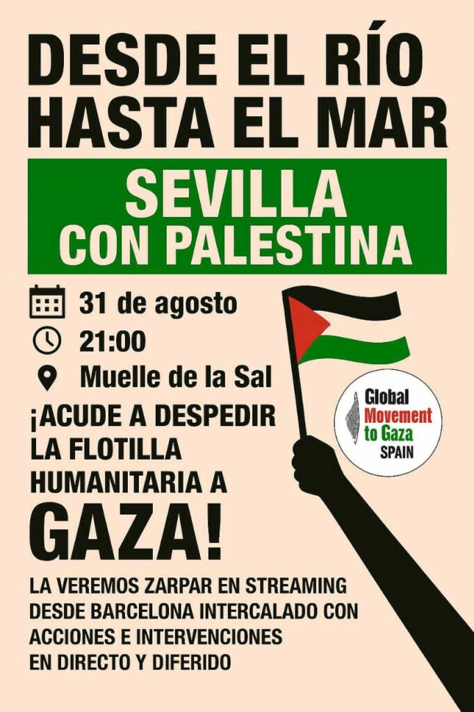 📢🇵🇸 En Sevilla habrá un acto de apoyo a la flotilla humanitaria a Gaza el mismo día de su partida desde Barcelona.