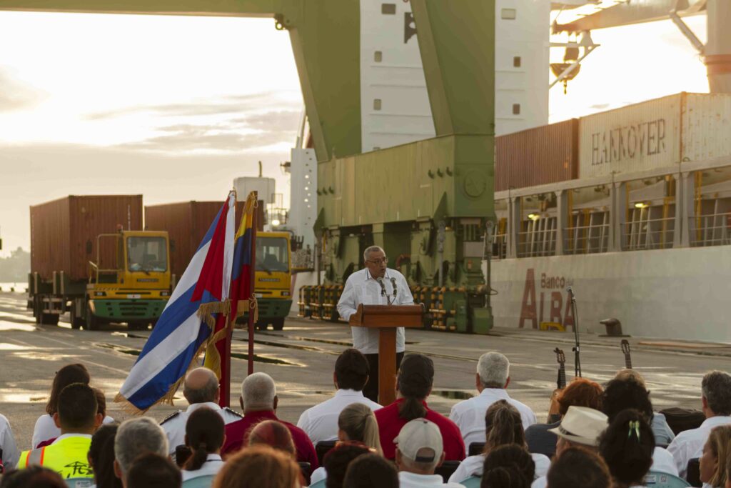 La carga, que llegó temprano en la mañana al Puerto del Mariel en el hermoso Barco del Alba, trae más de 6100 toneladas de alimentos para el consumo, materias primas para la elaboración, semillas y fertilizantes para la agricultura y alimentos para diversas especies animales.