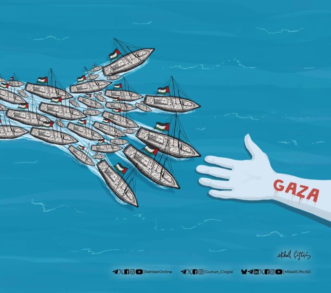 «Todo nuestro apoyo a la @GlobalSumudF que enfrenta valerosamente los desafíos del tiempo y ataques del sionismo y sus cómplices», destacó el presidente cubano desde el Caribe seriamente amenazado por el hambre belicista del imperialismo yanki, principal cómplice de los crímenes del régimen sionista de «Israel».