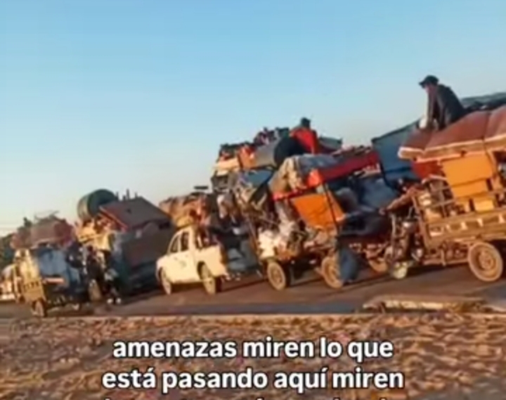 «Hola, compañeras y compañeros. Les voy a contar: Hoy nos obligaron a salir de nuestro hogar del norte de la Franja de Gaza hacia el sur. Obligados. Bajo los bombardeos, bajo las continuas amenazas.