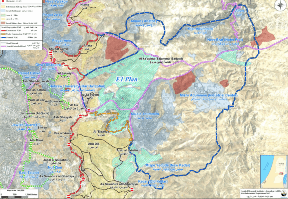Mapa que muestra el plan ‘E1’ de Israel / Fuente: ARIJ