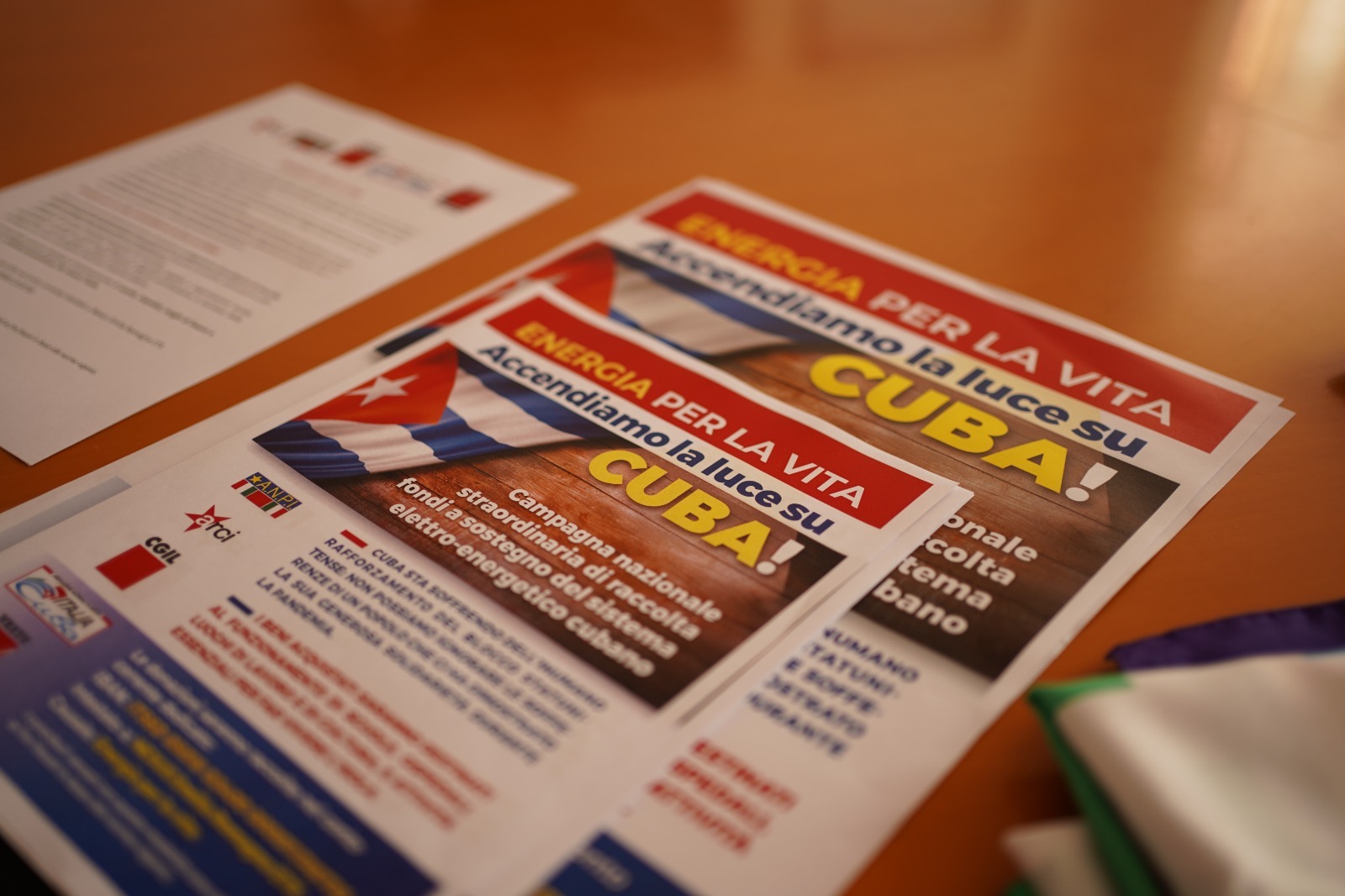 En la sede nacional de la CGIL, en presencia del secretario nacional Maurizio Landini, la embajadora de Cuba en Italia, Mirta Granda Averhoff, el presidente de la ANAIC, Marco Papacci, Walter Massa, presidente de Arci, Fabrizio De Sanctis, de la dirección de la ANPI, Gianluca Mengozzi, responsable de redes internacionales de ARCI, y Salvatore Marra, Responsable de Asuntos Exteriores de la CGIL, Daniele Lorenzi, del Comité Ejecutivo Nacional de la ARCI, y Federico Libertino, del departamento de Organización de la CGIL lanzaròn hoy una una campaña nacional para recaudar fondos urgente: Energia para la vida ¡unámonos para apoyar a Cuba!