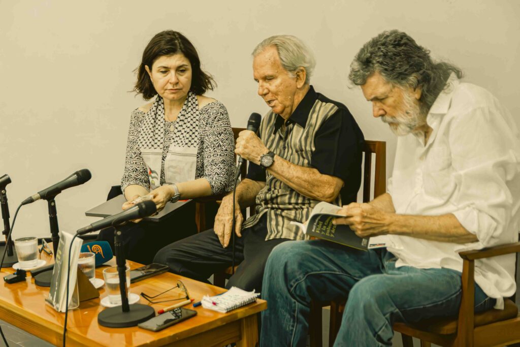 Wafica Ibrahim (izquierda), Raúl Rodríguez Ramos (al centro de la imagen) y Abel Prieto Jiménez, Presidente de Casa de las Américas. Foto: Victor Villalba.