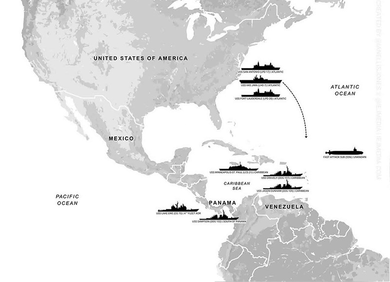 El despliegue de armamento bélico que ha movilizado ocho barcos de guerra, un submarino nuclear y miles de misiles y las amenazas que llaman y convocan a la guerra por parte autoridades del gobierno de Trump se constituyen en una amenaza para la seguridad de la región del Caribe y de toda América Latina, una violación a la soberanía y en una agresión del gobierno de los EE.UU. contra los pueblos de la región.