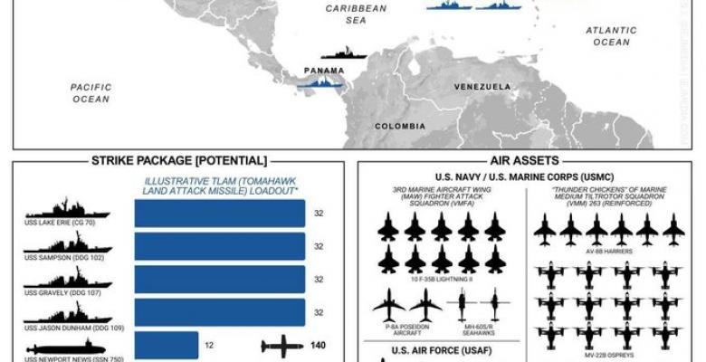 Y para reforzar este corretaje, aparece el inefable The Washington Examiner, con una conocida trayectoria a favor de las formas más radicales de expresarse la derecha imperial. Con un potente despliegue publicitario y replique en redes sociales digitales, el Examiner muestra detalles del dispositivo aeronaval, al parecer en fase de ultimar detalles, para proceder a algún tipo de invasión a tierra venezolana.
