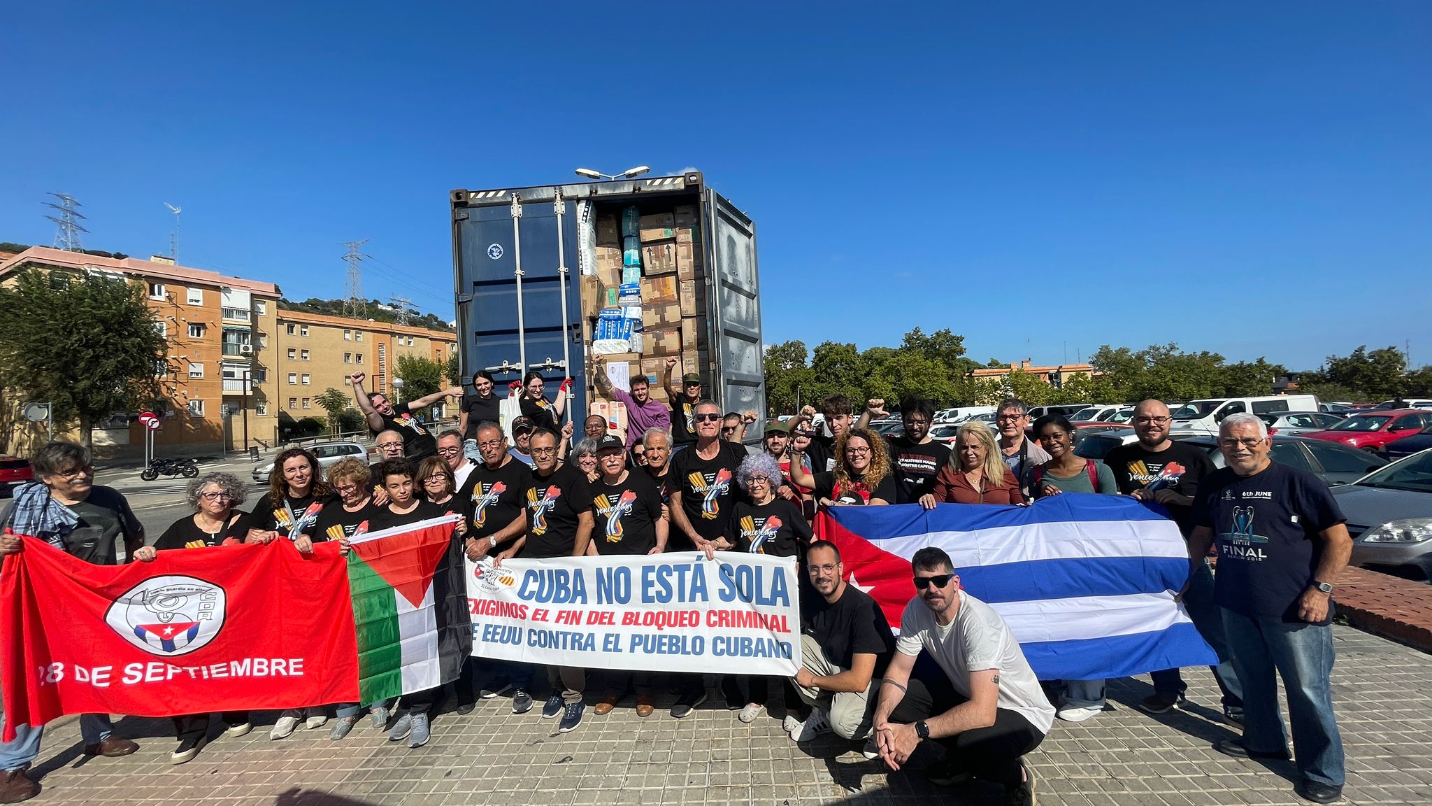 Este sábado 11 de octubre, en Barcelona, el hermanamiento Nou Barris–El Cerro realizó la carga de un contenedor de 40 pies con destino a Cuba. En la actividad participaron unas cincuenta personas, en su mayoría jóvenes vinculados al PSUC-PCE y a la JSUC, su organización juvenil. También la organización solidaria Eterno Baraguá.