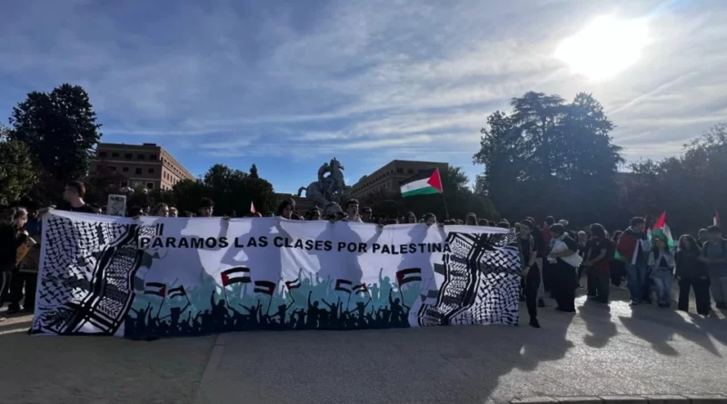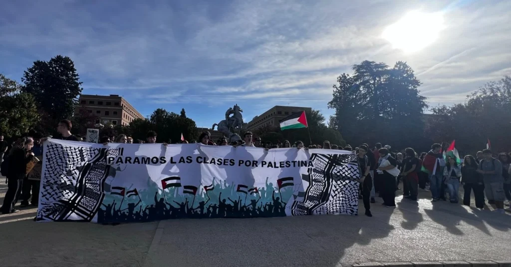 Por su parte, la secretaria general del Sindicato de Estudiantes, Coral Campos, y Álvaro Obera, portavoz de la huelga, afirmaron que la movilización busca obligar al Gobierno a «poner fin a su complicidad con un Estado que practica el genocidio«.