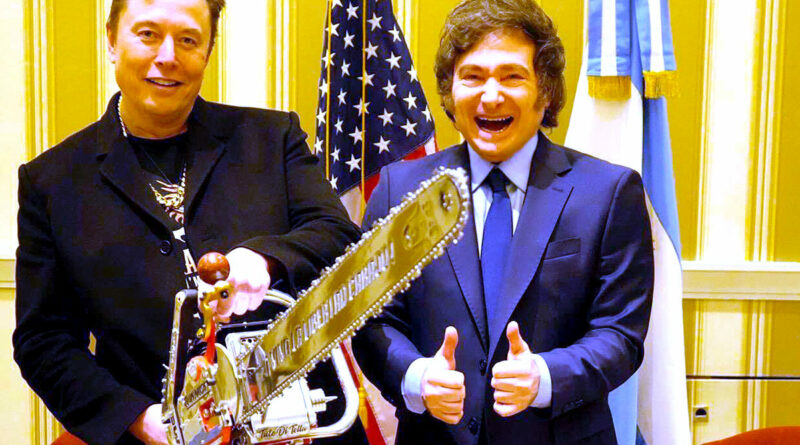 Su motosierra es conocida desde hace tiempo también en Austria. Al menos desde que Elon Musk, por entonces todavía el perro de presa del presidente estadounidense, la agarró. Las primeras imágenes que circularon en los medios de comunicación austríacos del candidato y posterior presidente electo Javier Milei lo mostraban a menudo con este símbolo de la destrucción del Estado. Estas imágenes, junto con citas de sus discursos de odio y relatos sobre su inclinación por el oscurantismo espiritual, provocaban medias sonrisas. Por otro lado, su invocación de la “escuela austríaca de economía” despertó en algunos algo parecido al orgullo patriótico.