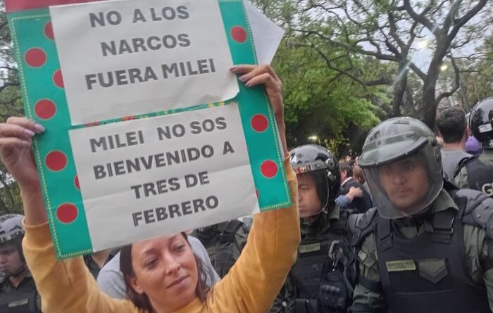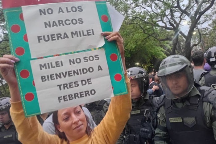 En un discurso, que duró cinco minutos, megáfono en mano, Milei volvió a sus repetidas frases de campaña, con el comunismo -igual que su admirado Trump- como vector de sus afirmaciones: «Tenemos la posibilidad de abrazar la civilización y la libertad o la barbarie comunista de los Kirchner”, exclamó. Asumió que «estamos en un momento duro», pero se atajó con dudosas credenciales: «hay menos inflación, menos pobres, menos indigentes». También, aunque sonó insólito, se refirió al narcotráfico. «Hay menos narcotráfico y también menos inseguridad».