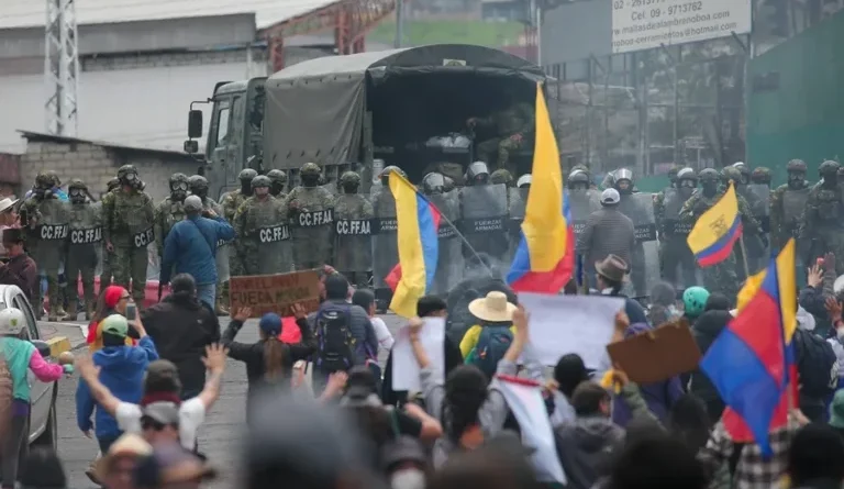 Horas atrás, la CONAIE denunció el ingreso de la fuerza pública a domicilios para capturar a presuntos manifestantes del paro nacional. «Ingresar arbitrariamente a domicilios para capturar y golpear salvajemente a personas, es un crimen de Estado y no puede ser tolerado en ninguna democracia«.