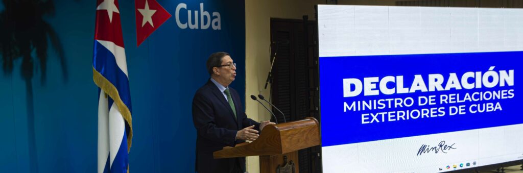 «Lo que está haciendo el Departamento de Estado, el Secretario de Estado y algún que otro subsecretario no es diplomacia, es una presión con argumentos en los que nadie cree y que nadie va a creer para intentar alterar el debate que se va a producir los días 28 y 29», denunció Bruno Rodríguez, argumentando que solo buscan desviar la atención en mentiras construidas «por una gran superpotencia contra un pueblo pequeño, noble trabajador y solidario».