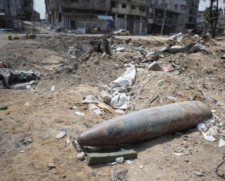 Días atrás, la Oficina gubernamental de Información en Gaza anunció la existencia de 65 a 70 millones de toneladas de escombros y 20 mil artefactos explosivos sin detonar de bombas y misiles israelíes.