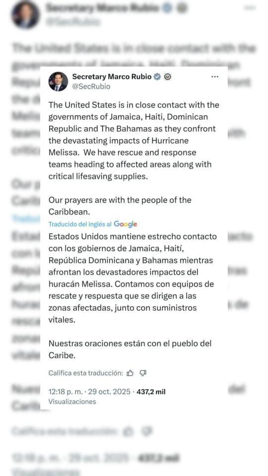 2. Desconocer a las personas en Cuba afectadas por el huracán Melissa es la mejor prueba del desprecio que siente por el pueblo de Cuba.