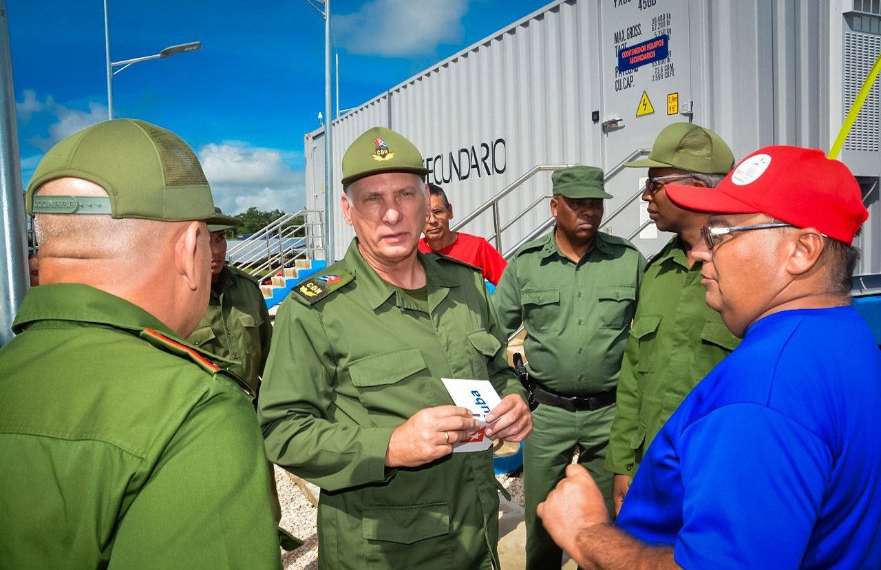 En visita al PSFV Providencia, ubicado en las cercanías del Aeropuerto Internacional Frank País, en el municipio cabecera, Díaz-Canel reconoció los esfuerzos de los trabajadores de la esfera en el resguardo de la Central Termoeléctrica Felton y de las obras solares, que no presentan daños apreciables, de vital importancia para reforzar el Sistema Eléctrico Nacional.